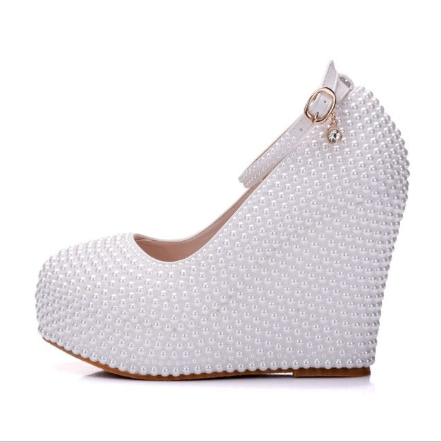 Woman Platform Wedges WhiteWedding Bridal Shoes